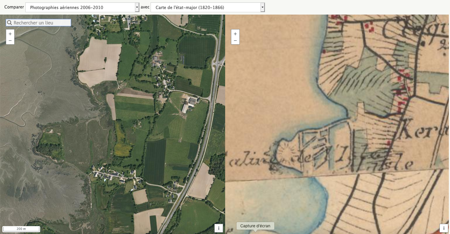 Montage à partir d'extrait de la carte de l'état major et d'une photographie aérienne, saline de l'Isle, Theix-NoyaloImmatriculation