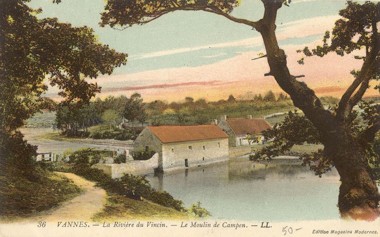 Vue générale du moulin et du logis du meunier. Carte postale ancienne, editions LL. (Fonds privés)Immatriculation