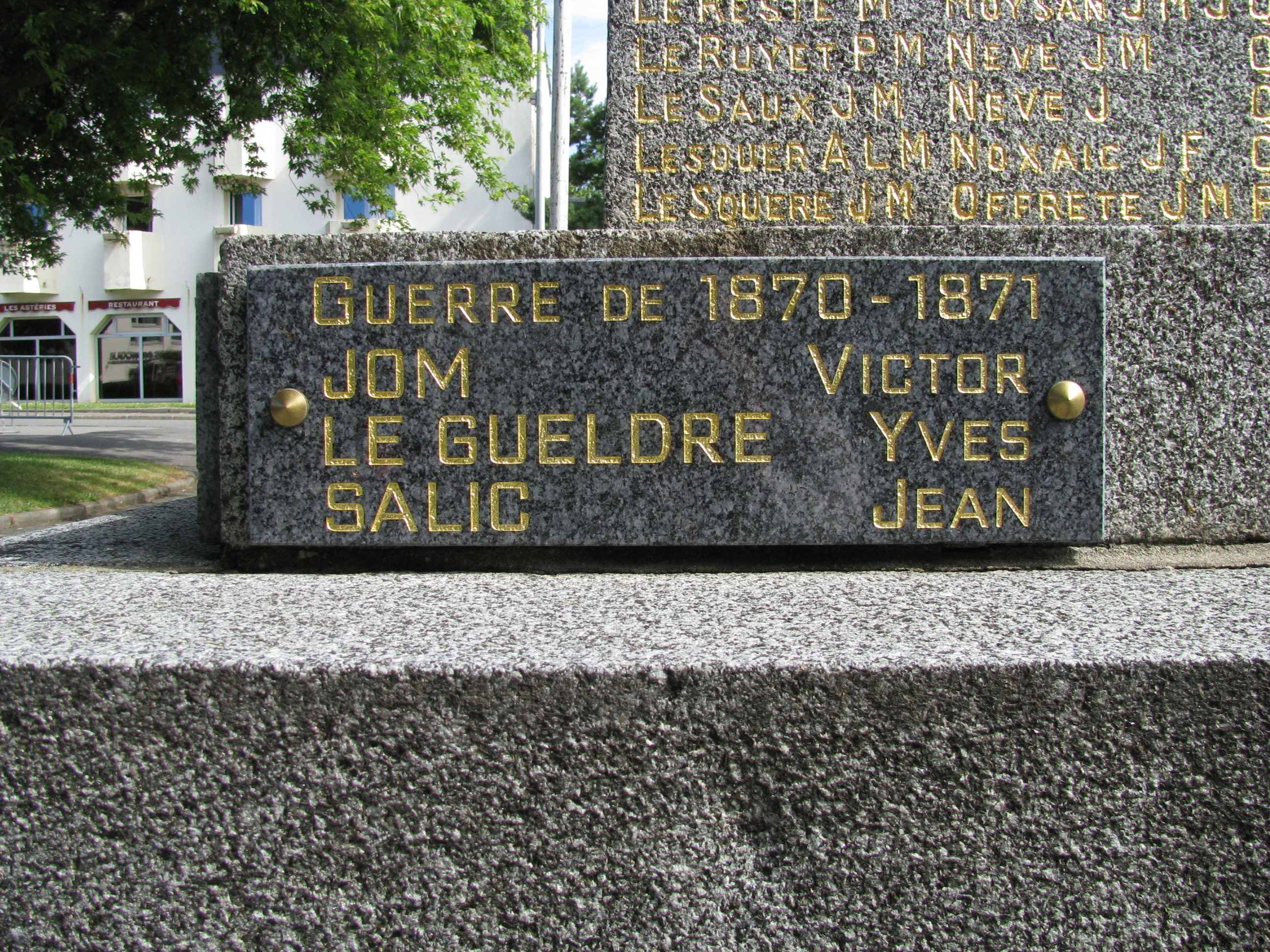 Plaque commémorant les trois ploemeurois morts pendant le conflit de 1870-1871Immatriculation