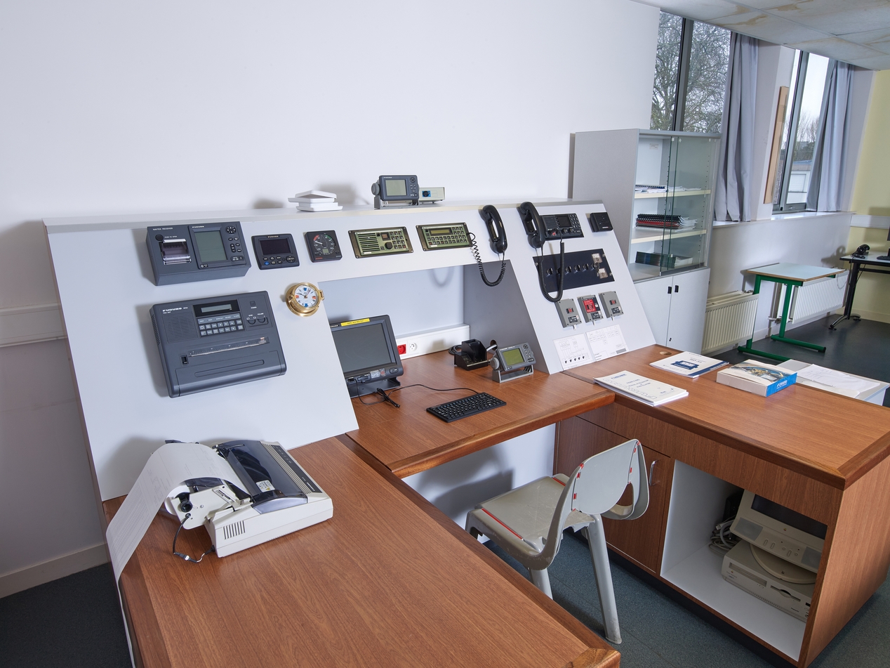 Simulateur radio, dans l'atelier radio. Noter les combinés téléphoniques en bakélite.Immatriculation