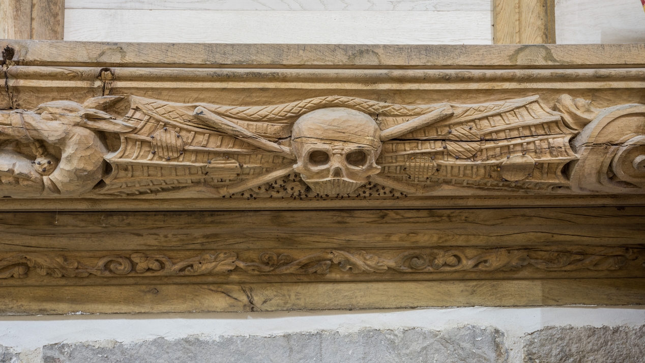 Détail d'une sablière recréée lors de la restauration de l'édifice (état en 2021)Immatriculation
