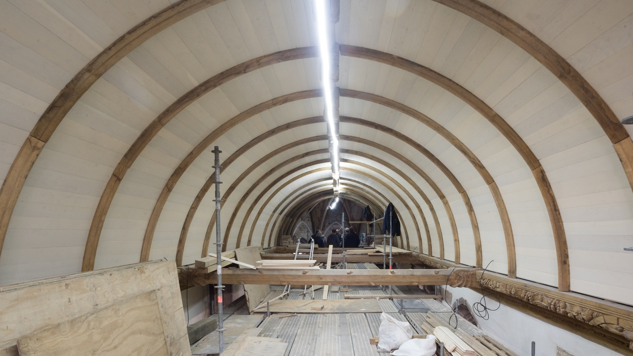 Charpente lambrissée reconstruite au-dessus de la nef (état en 2021)Immatriculation