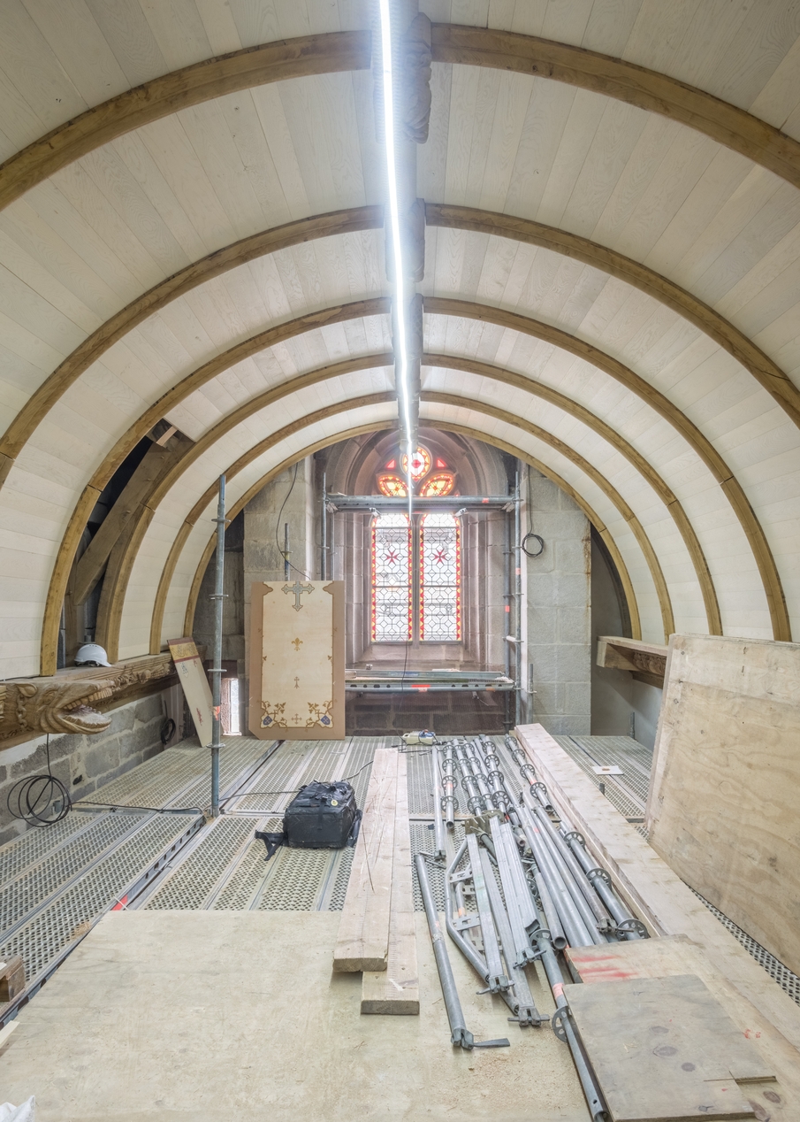 Charpente lambrissée reconstruite sur la nef suite à l'incendie (état en 2021)Immatriculation