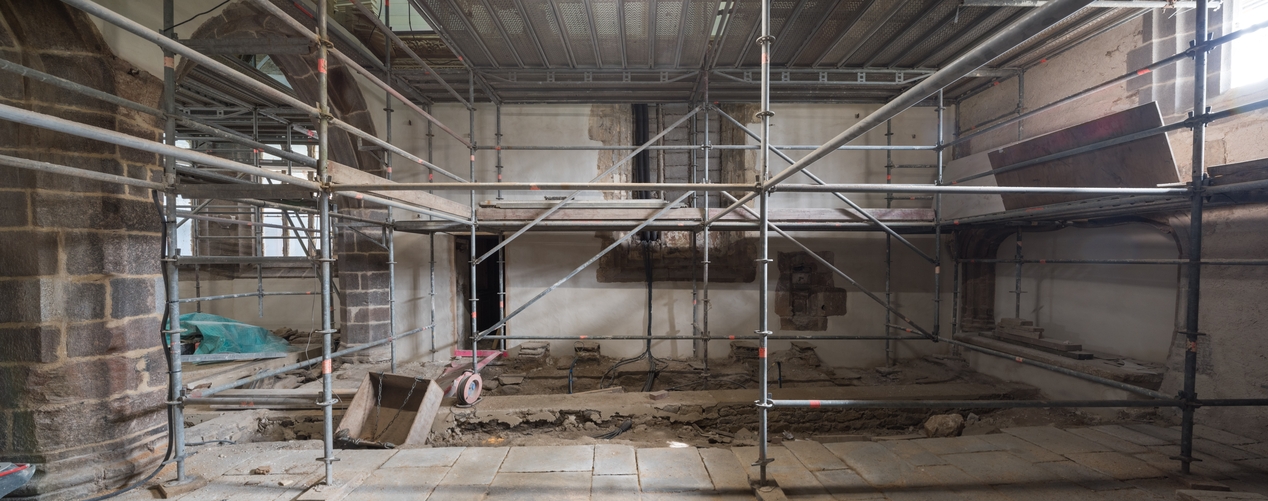 Croisillon sud, mur est avec fenêtre bouchée découverte à l'occasion du chantier de restauration (état en 2021)Immatriculation