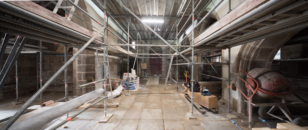 La nef en chantier, vue vers le fond de l'église (état en 2021)Immatriculation