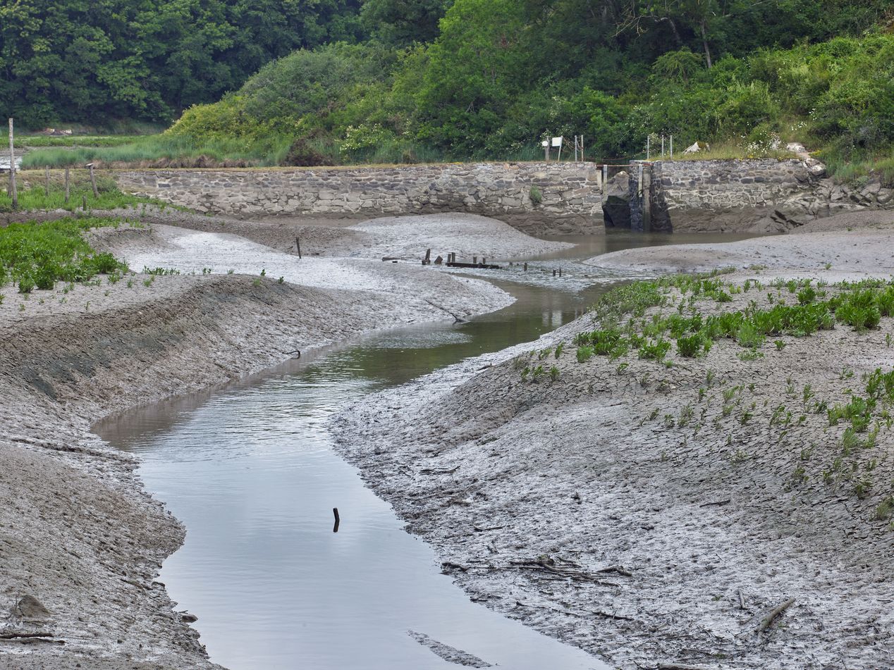 Ancien bassin de retenue à marée basse, porte à clapetImmatriculation
