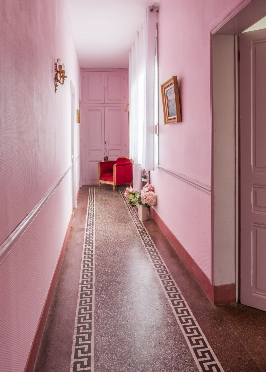 Vue intérieure, couloir avec sol en 'terrazzo'Immatriculation