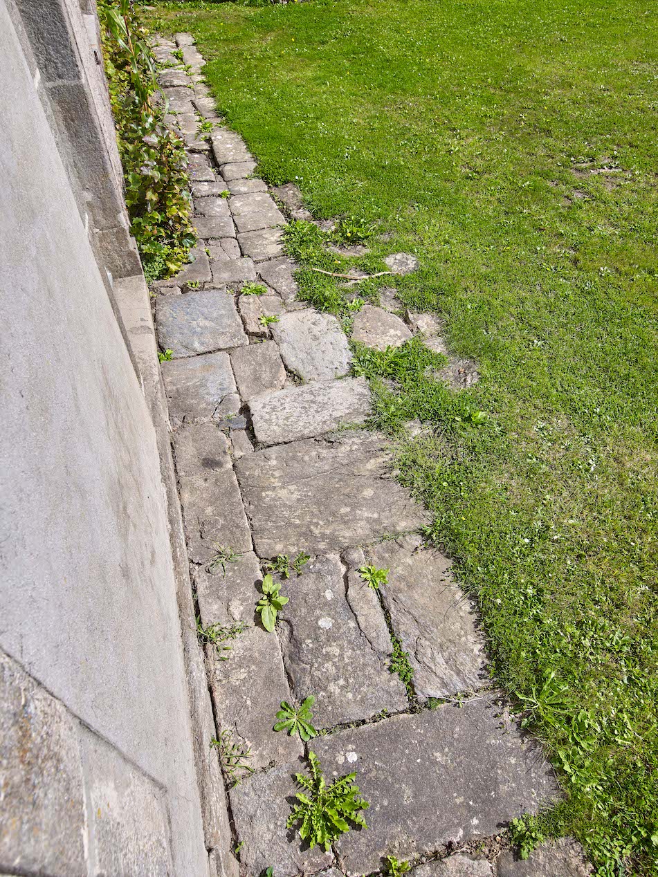 Logis, façade sud, détail du dallage (2021)Immatriculation