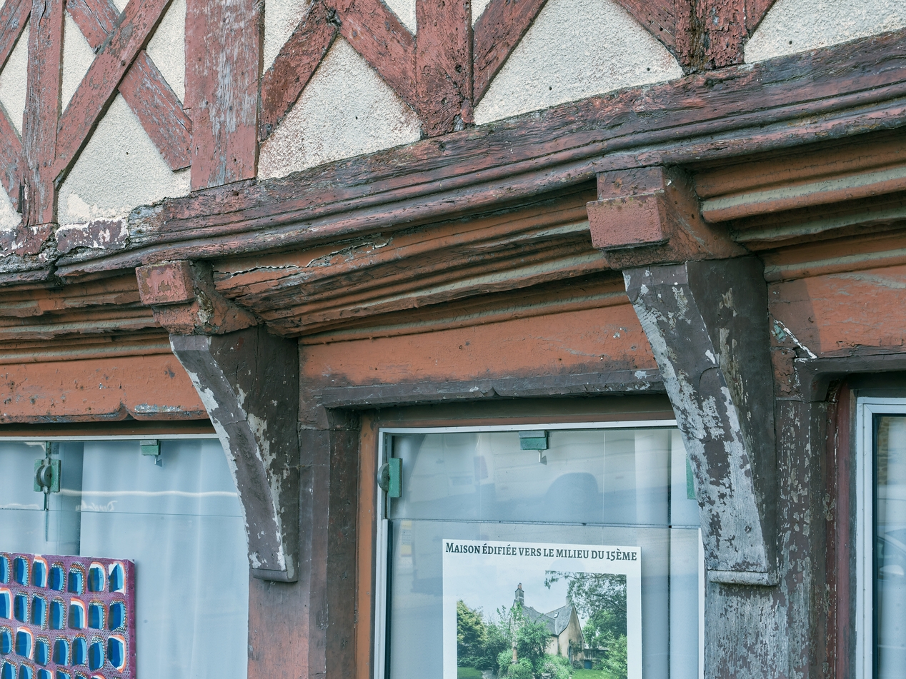 Moulurations sur la sablière basse et les entretoises.Immatriculation