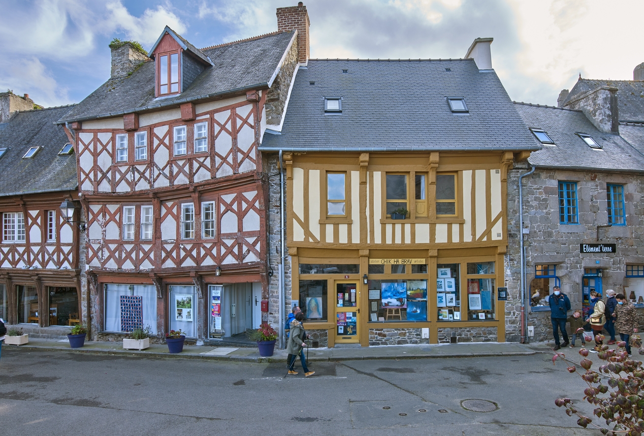 Maisons mitoyennes à façades principales en pan de bois.Immatriculation
