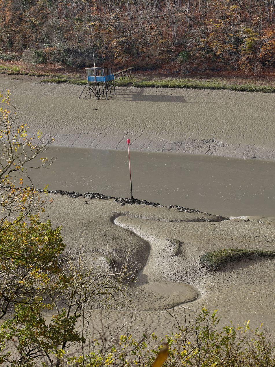 Le chenal, une cabane de carrelet à marée basse sur la RanceImmatriculation