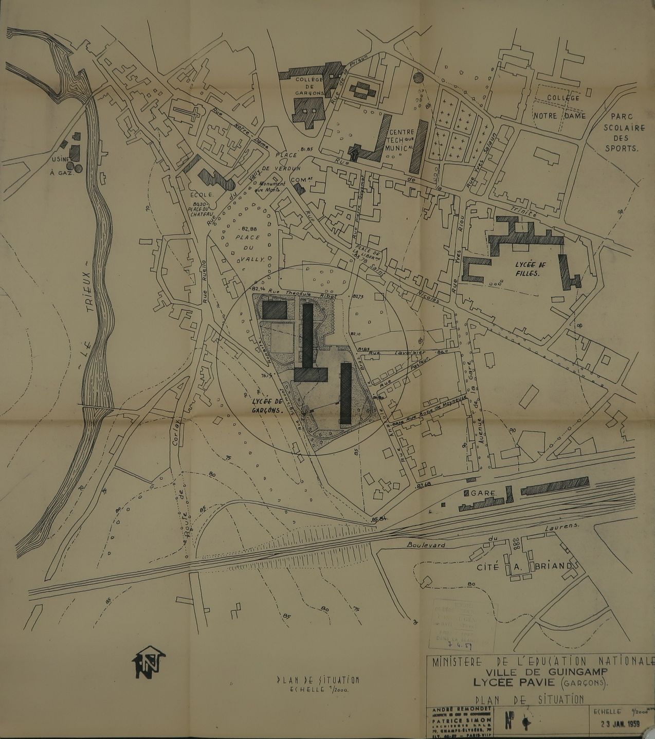 Plan de situation. André Remondet et Patrice Simon, architectes, 23 janvier 1959.Immatriculation