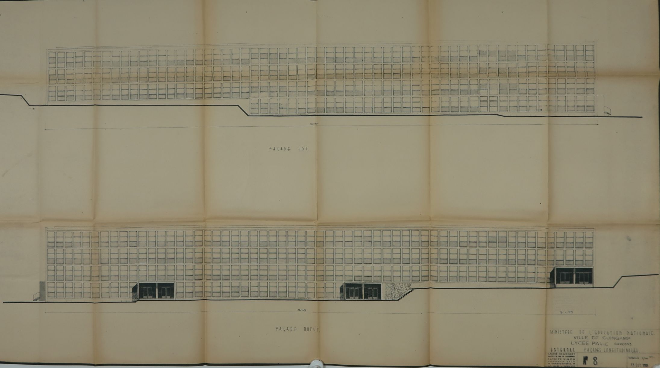 Archives Nationales : 19771564/20. Sans titre. Dossier concernant la construction du lycée A. Pavie de Guingamp. Ministère de l’Éducation nationale, DESUS.
