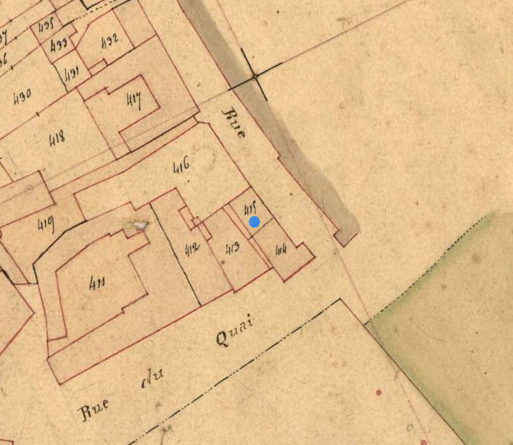 Maison n°56 rue Renan en 1834. Extrait du cadastre ancien, section A2 (A.D. 22, série 3 P 367/1)Immatriculation