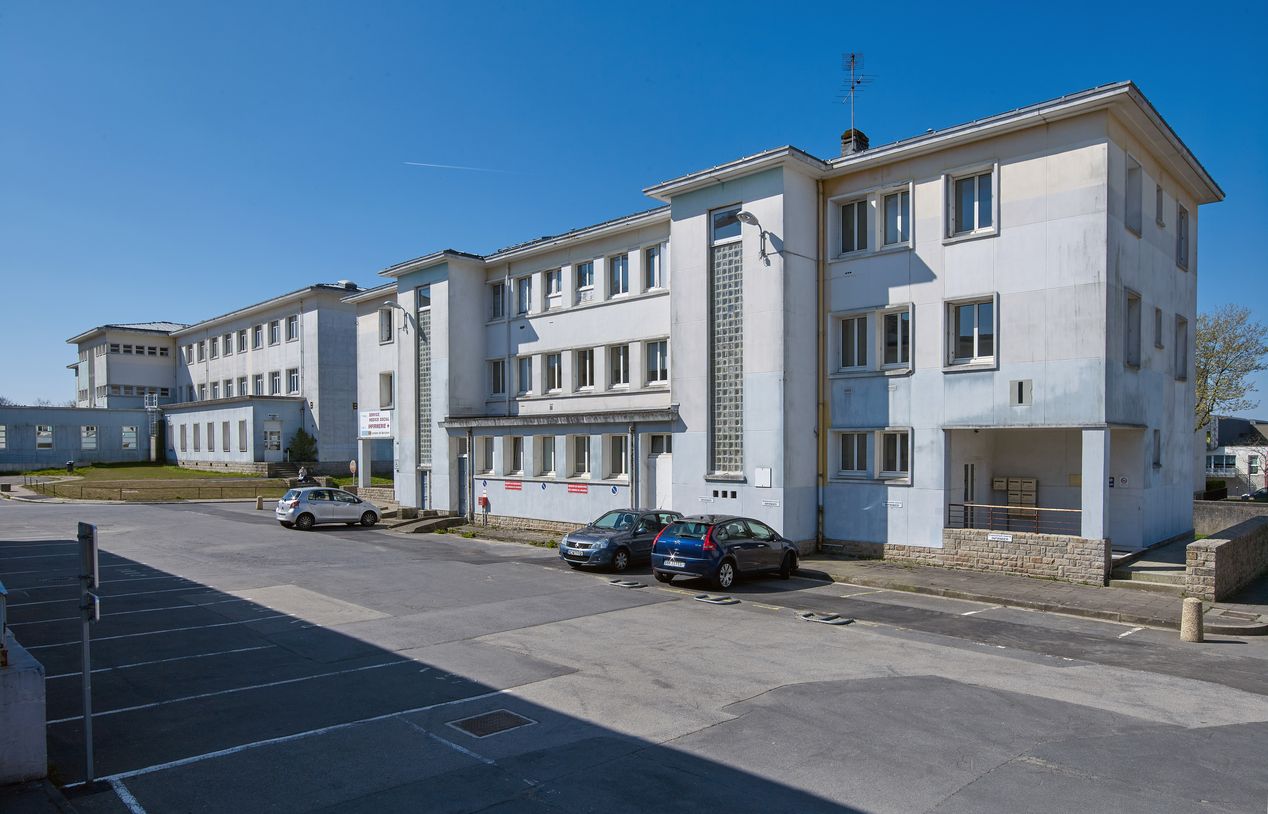 Façade arrière (est) de l'infirmerie. A gauche, Bâtiment B, internat du lycée La Pérouse-Kerichen. J-B. Mathon, architecte.Immatriculation
