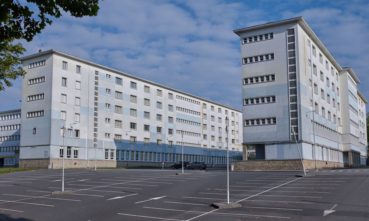 Bâtiment L et K, internats de garçons. A l'arrière plan à gauche : bâtiment N, externat du lycée technique. Vue prise du nord-ouest. J-B. Mathon, architecte.Immatriculation