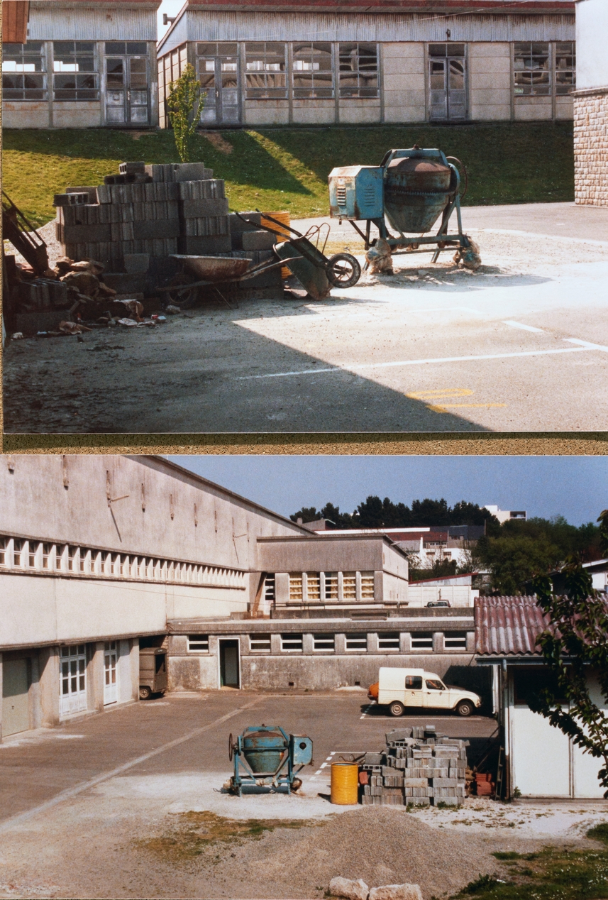Vues d'ambiance lors de travaux au lycée Vauban. Celle du bas montre la façade sud des ateliers.Immatriculation