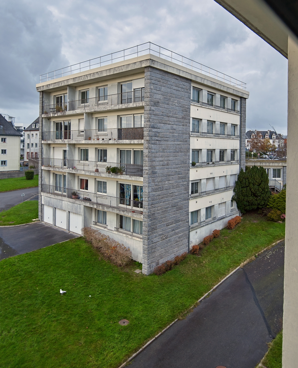 Tour de logements prise depuis l'externat du lycée : façades sud et est. Jean Lacaille, architecte, vers 1967.Immatriculation