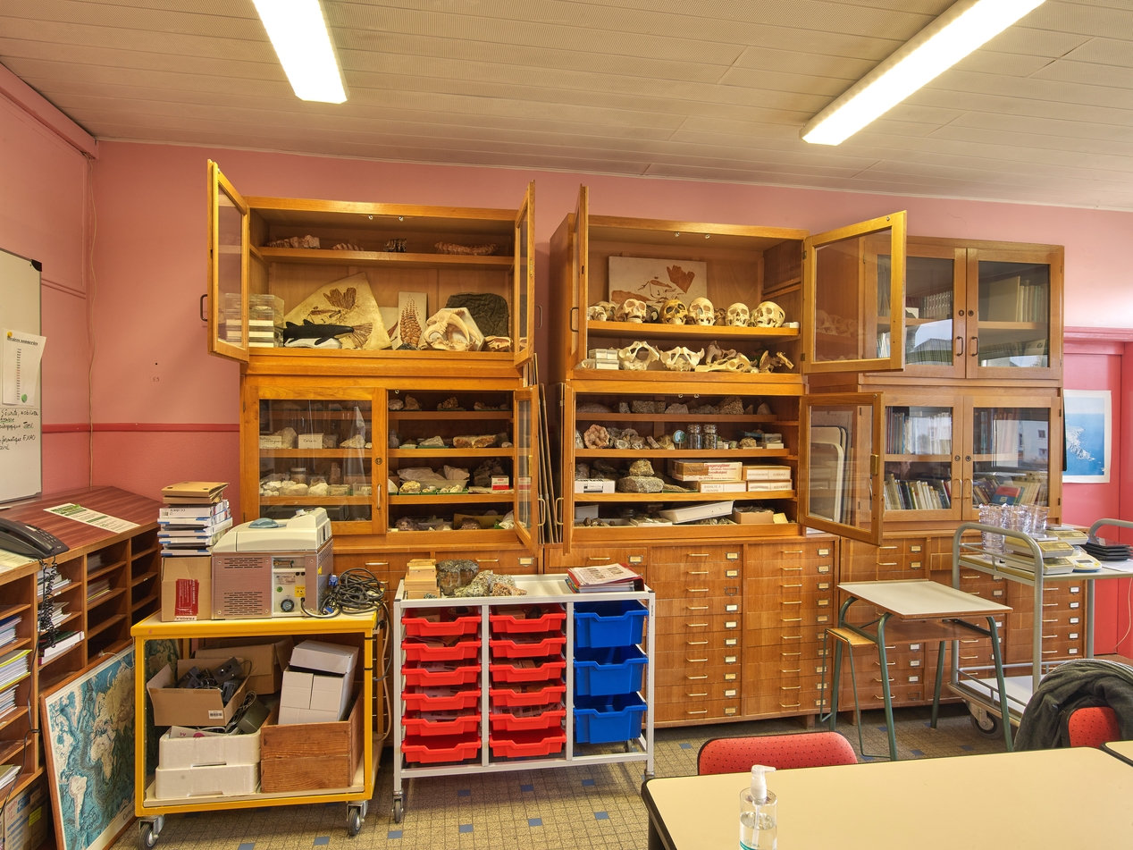 Laboratoire de sciences naturelles : fossiles, squelettes, minéraux...Immatriculation