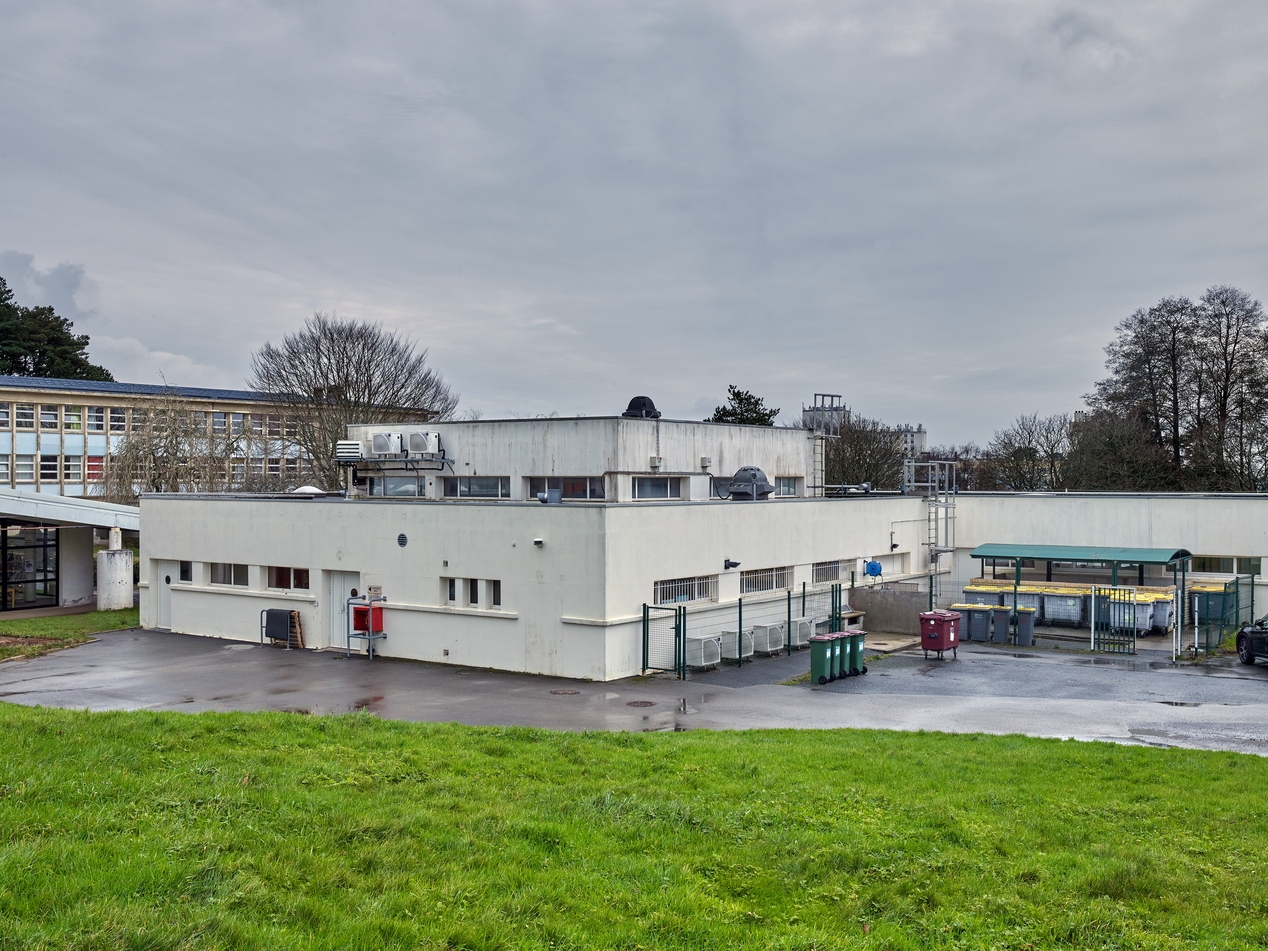 Service de restauration et cuisines : vue prise du nord-ouest. Jean Lacaille, architecte, vers 1966.Immatriculation