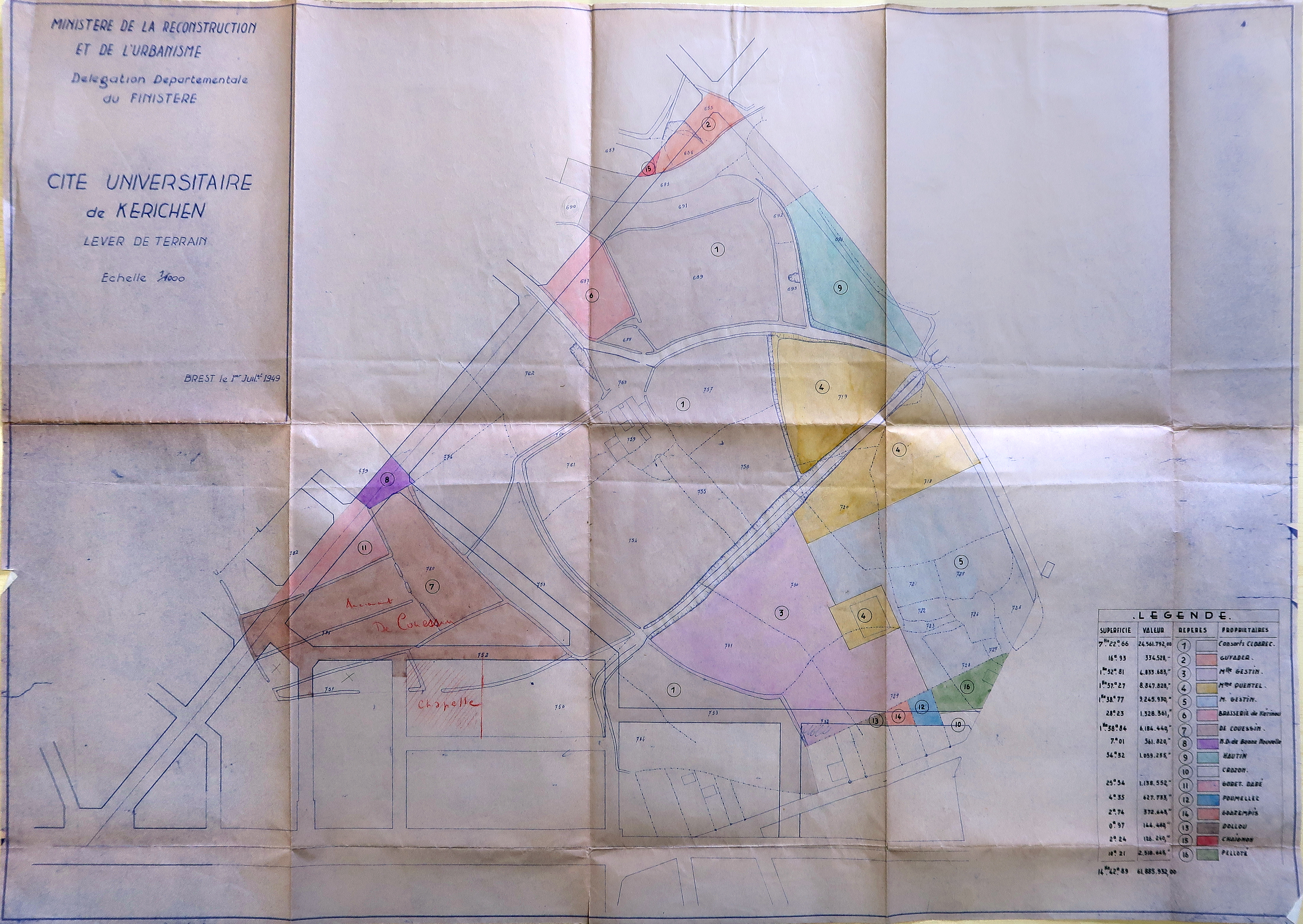 Archives municipales et communautaires de Brest : 4 M 52. Lever de terrain. Cité universitaire de Kerichen, 1949.