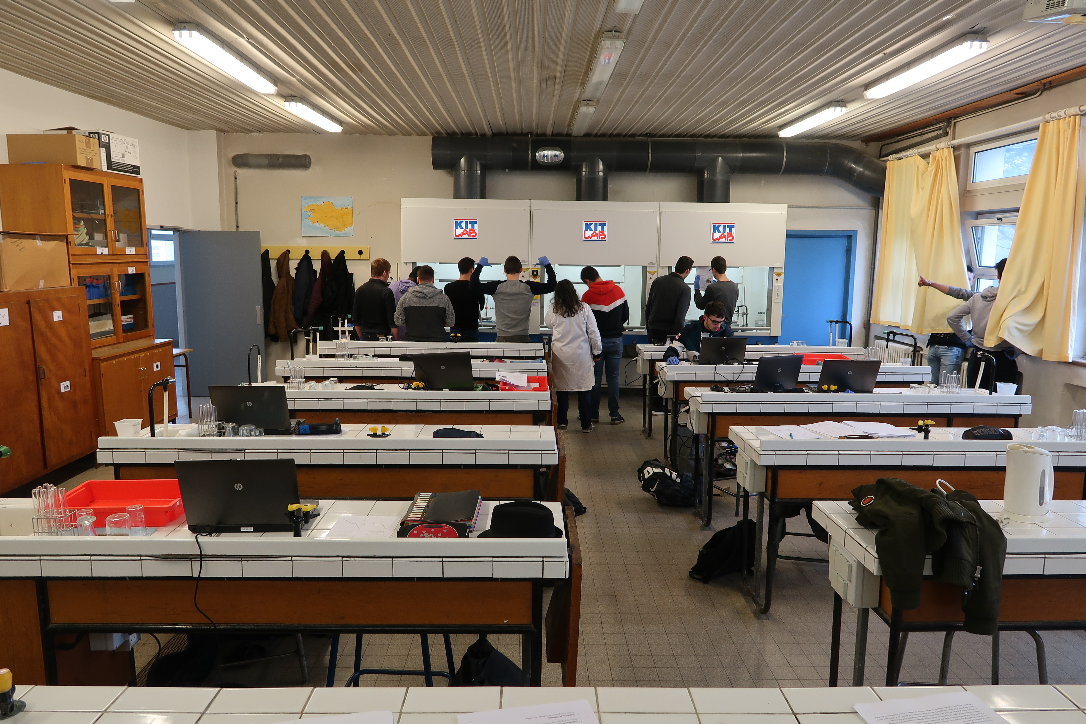 Salle de sciences dans le bâtiment N (salle 127). En 2019, avant sa restructuration, elle était quasiment dans son état d'origine du début des années 1960.Immatriculation