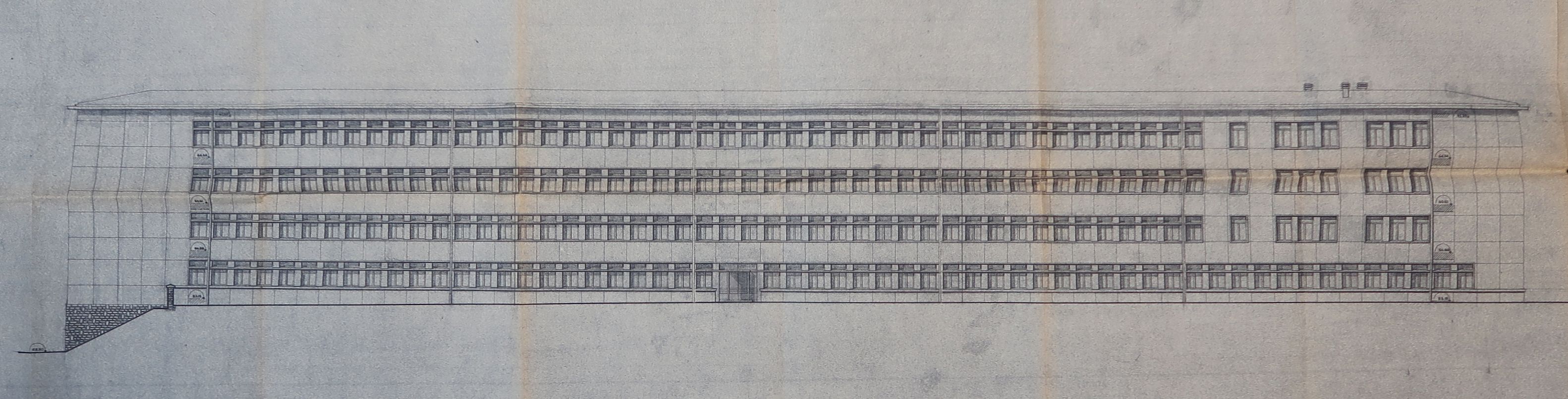 Elévation de la façade sud du bâtiment N (externat). J-B. Mathon, architecte, sd.Immatriculation