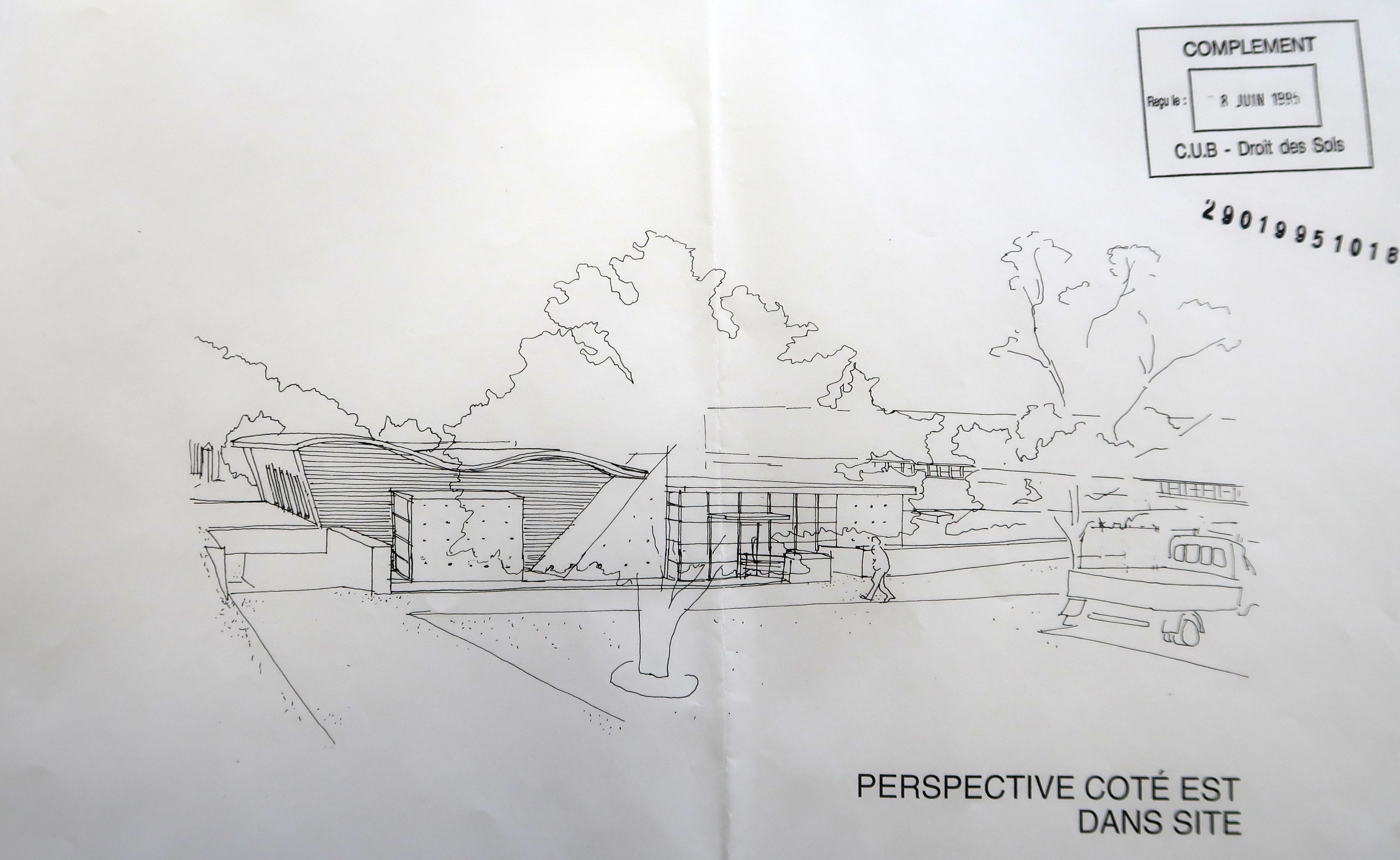 Centre de documentation et d'information : vue perspective côté est. Gildas Nédélec, architecte, 6 juin 1995.Immatriculation