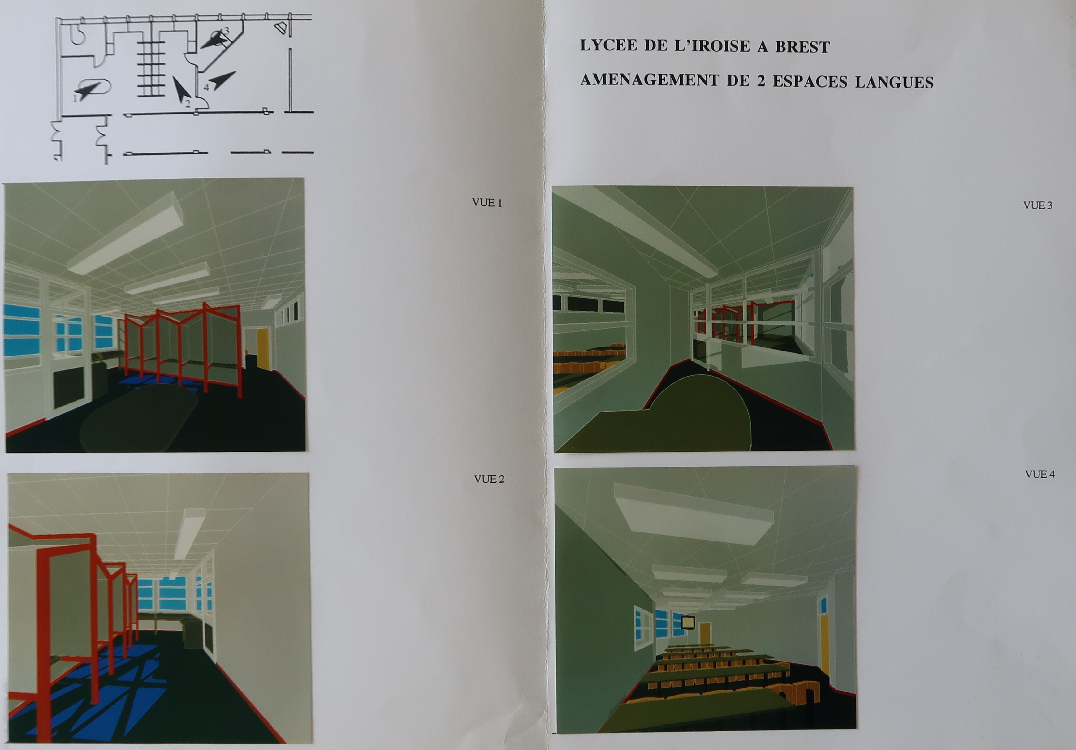 Projet d'aménagement de deux espaces langues. René Burel architecte, vers 1993-1994.Immatriculation