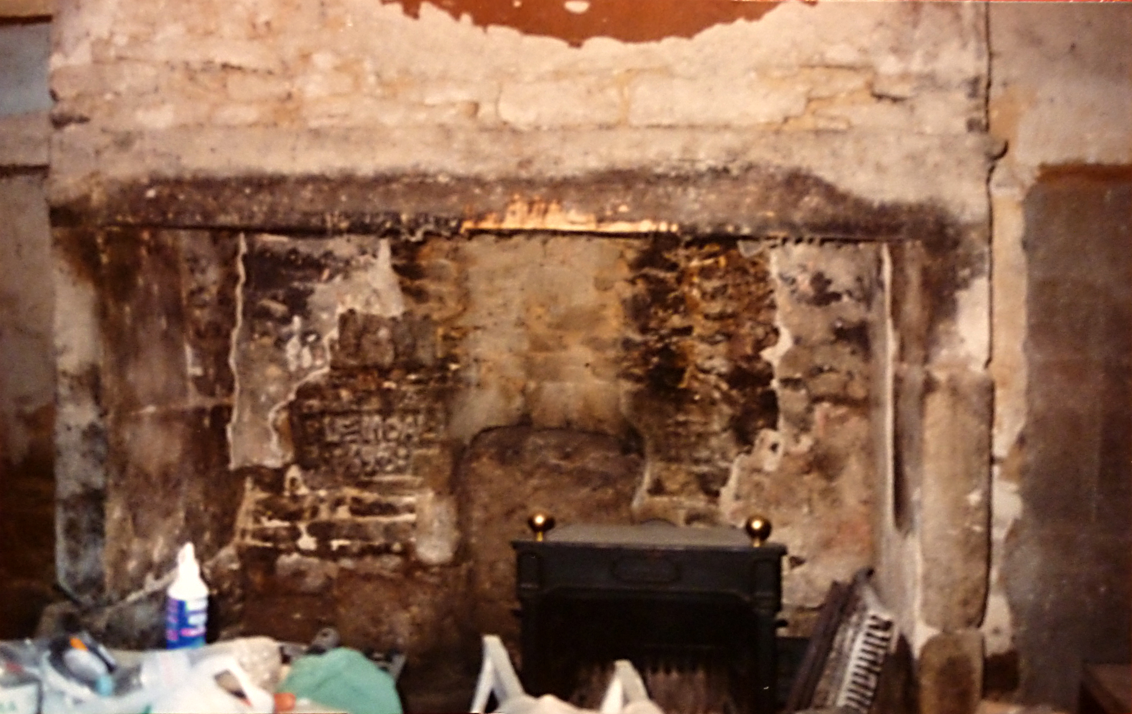 Logis daté 1865, pignon est. Cheminée avec pierres réemployées et inscription : P : LEMOAL / 1695 ?. (Vers 2000)Immatriculation