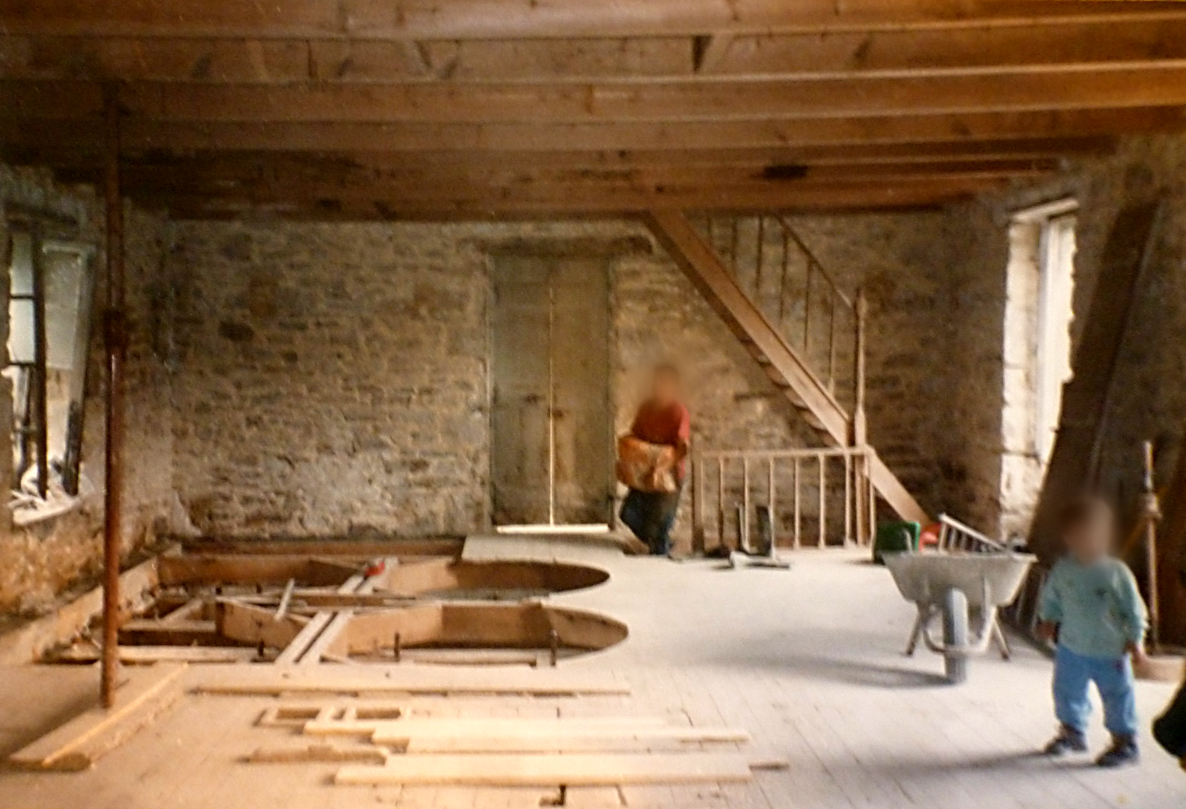 Etage, pignon est, porte haute et emplacement des meules. (vers 2000)Immatriculation