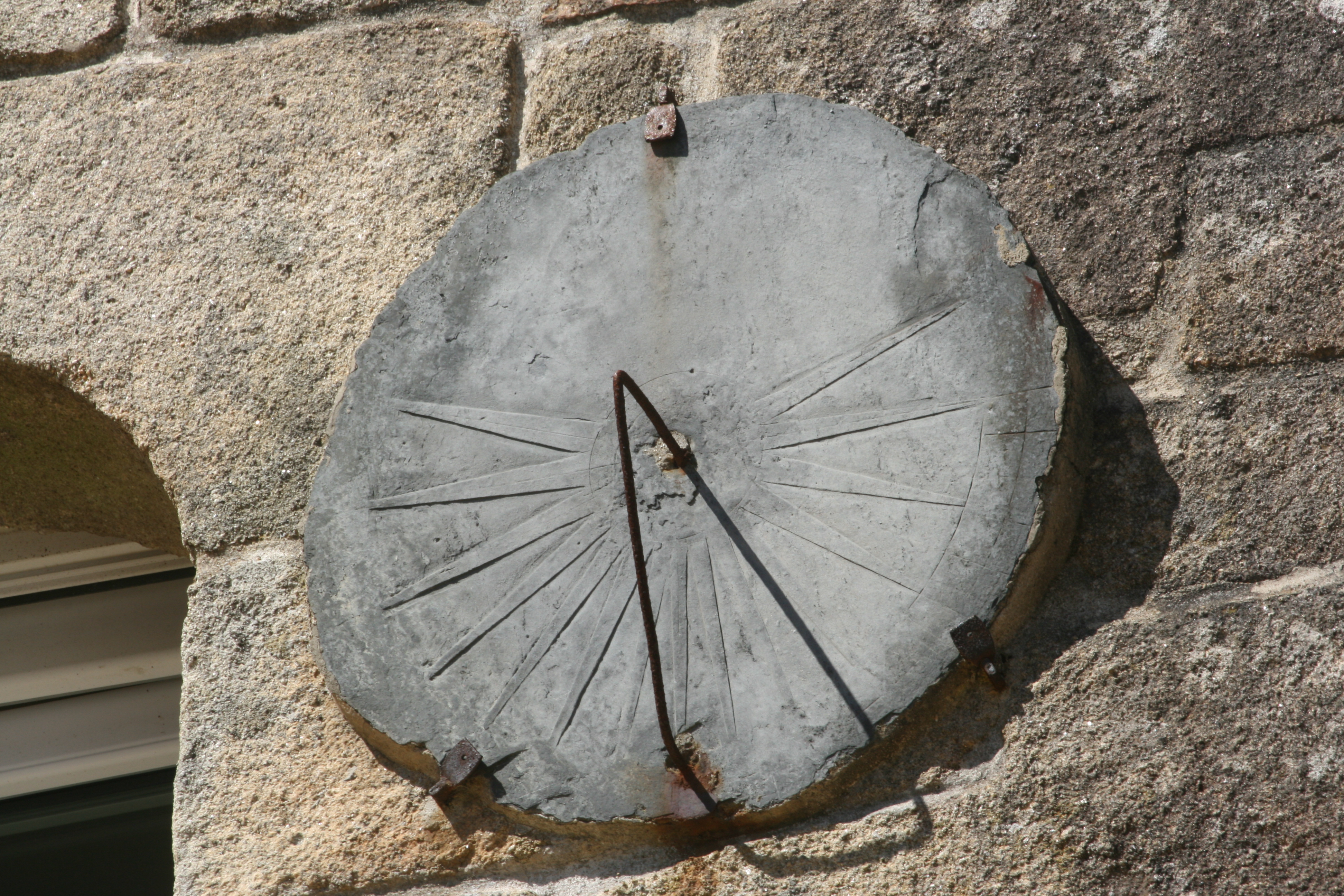Elévation antérieure sud, lucarne est et cadran solaire. (2020)Immatriculation
