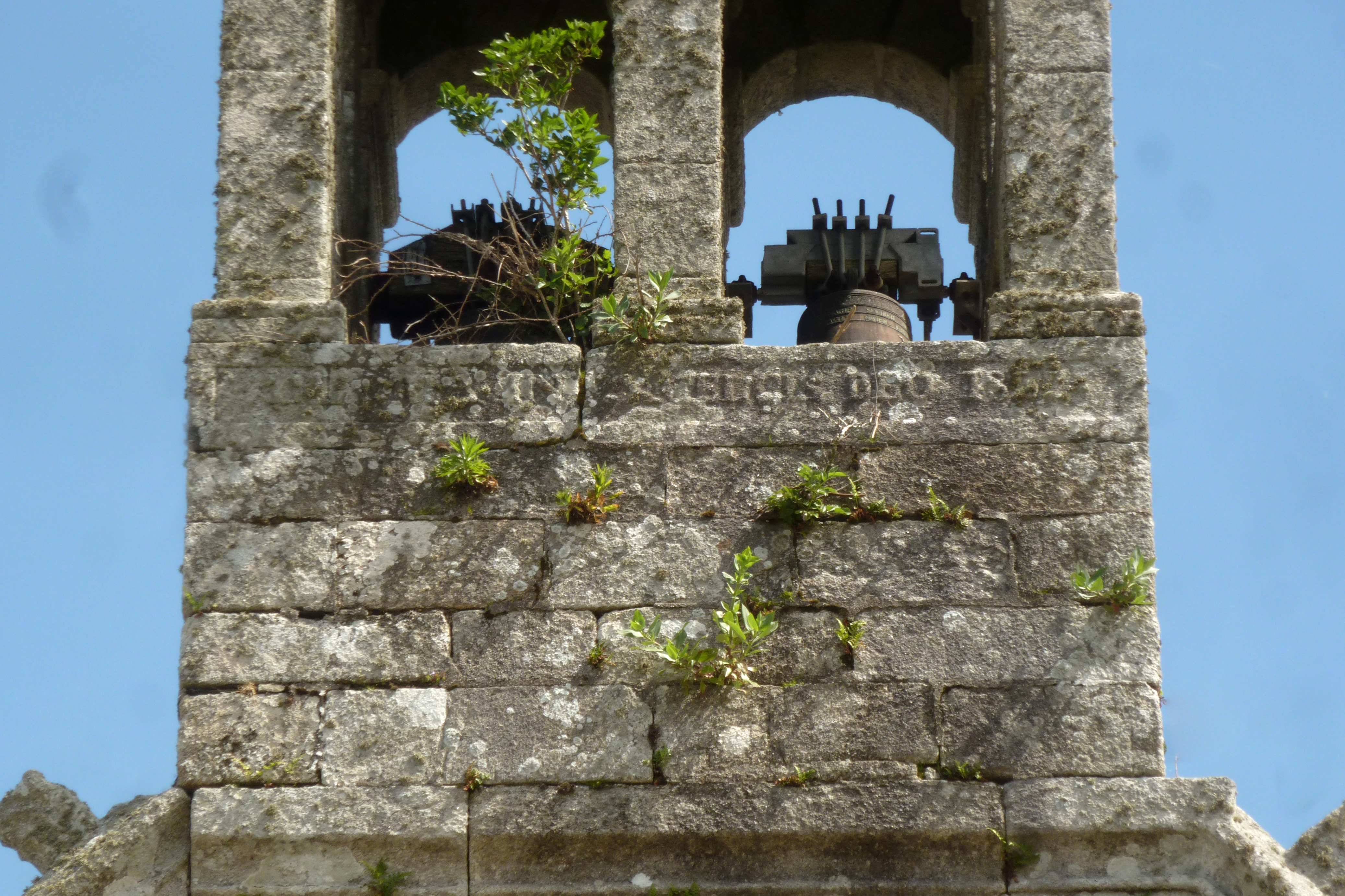 Clocher, détail de l'inscription côté ouest : "GLORIA IN EXCELSIS DEO 1837". (2021)Immatriculation