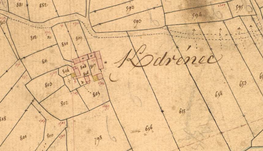Village de Kerdrenec. -Section D 2 de Kervitam du cadastre ancien de la commune de Mahalon, 1836.Immatriculation