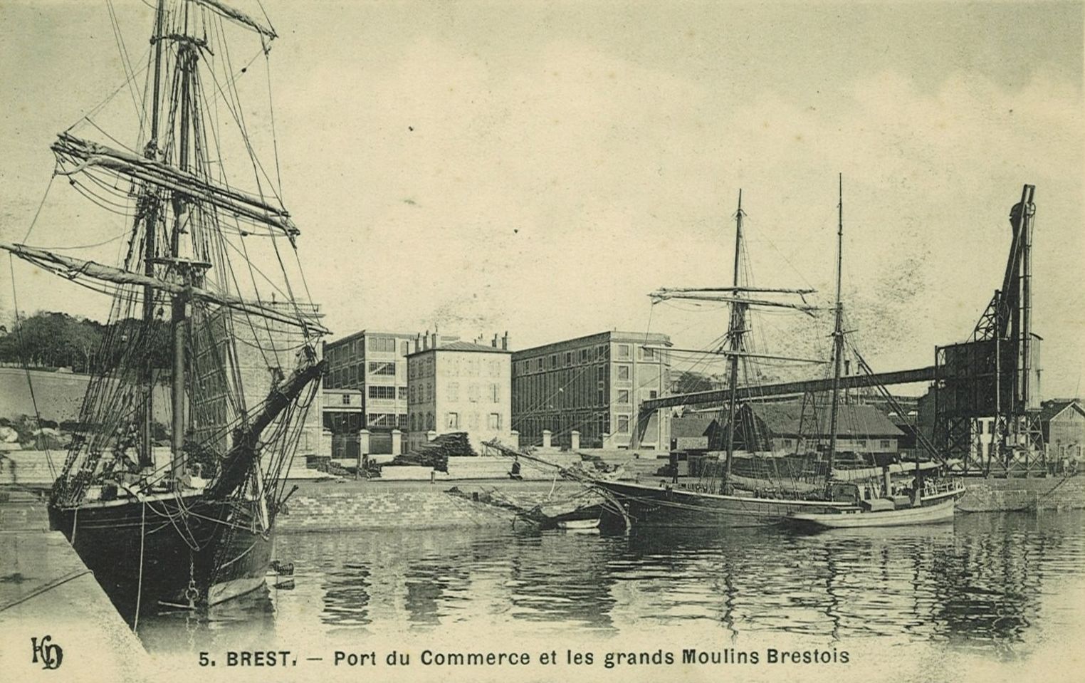 Carte postale, Brest, port de commerce et les grands moulins brestois. Ed. KD.Immatriculation