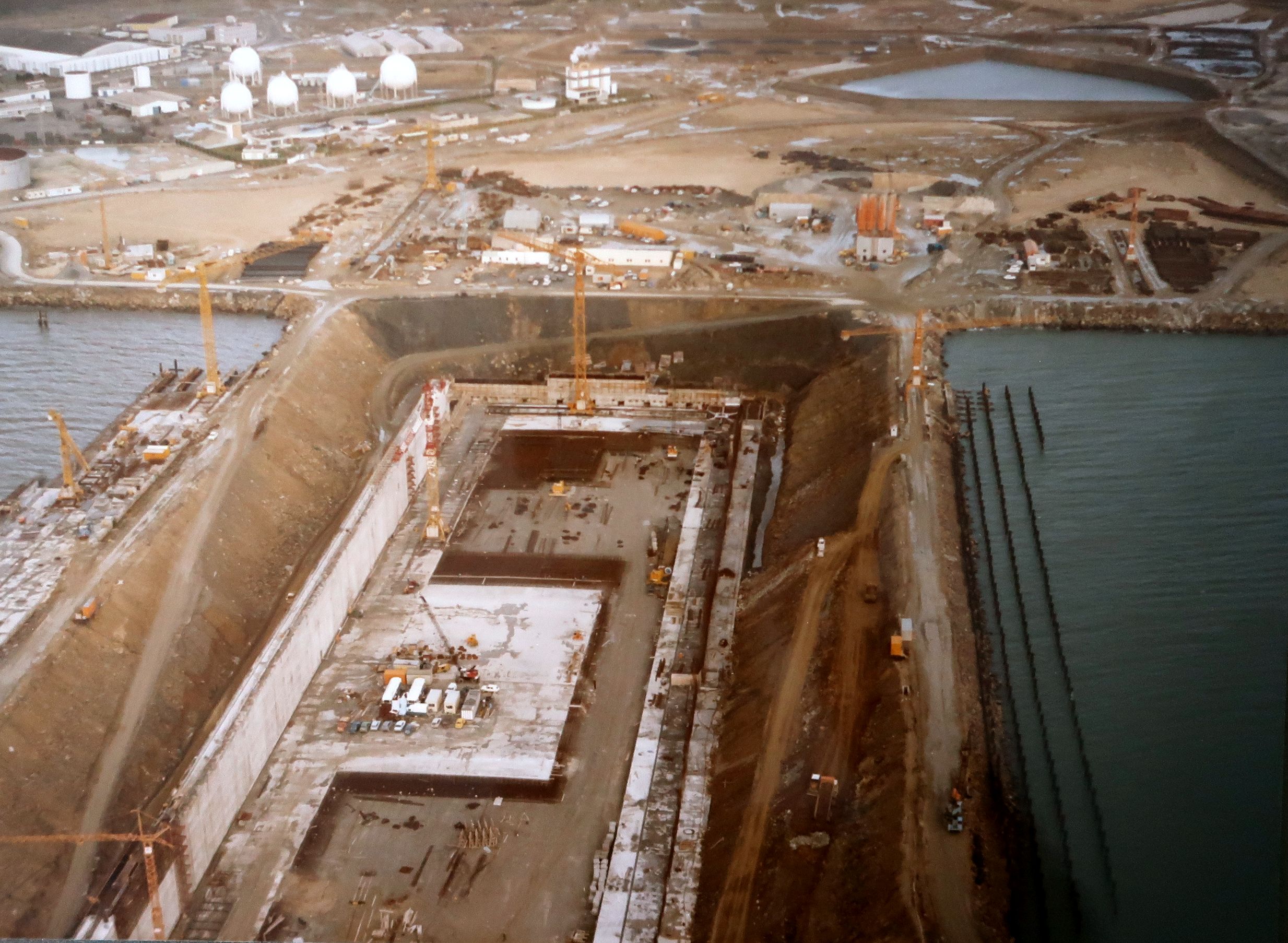 Forme 3 : bajoyer en cours de construction, radier, mis en place des pieux du QR5 (14/12/1978)Immatriculation
