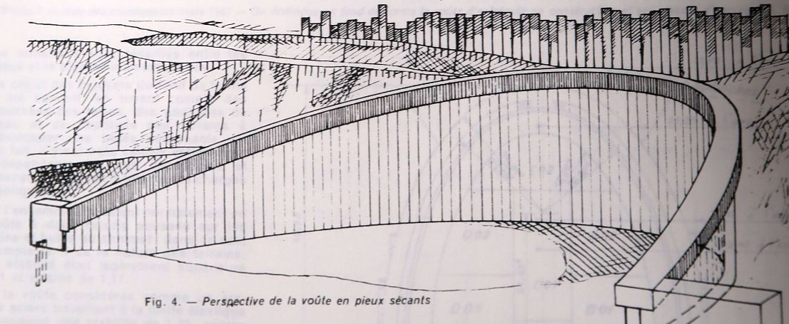 Dessin : perspective de la voûte en pieux sécants (extrait doc. M. Etienne et P. Andrau, 1968)Immatriculation