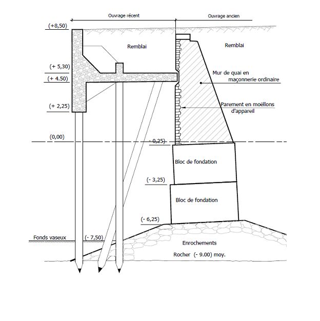 Coupe du quai Nord 5e bassin : quai de 1869 ; rempiétement 1961Immatriculation