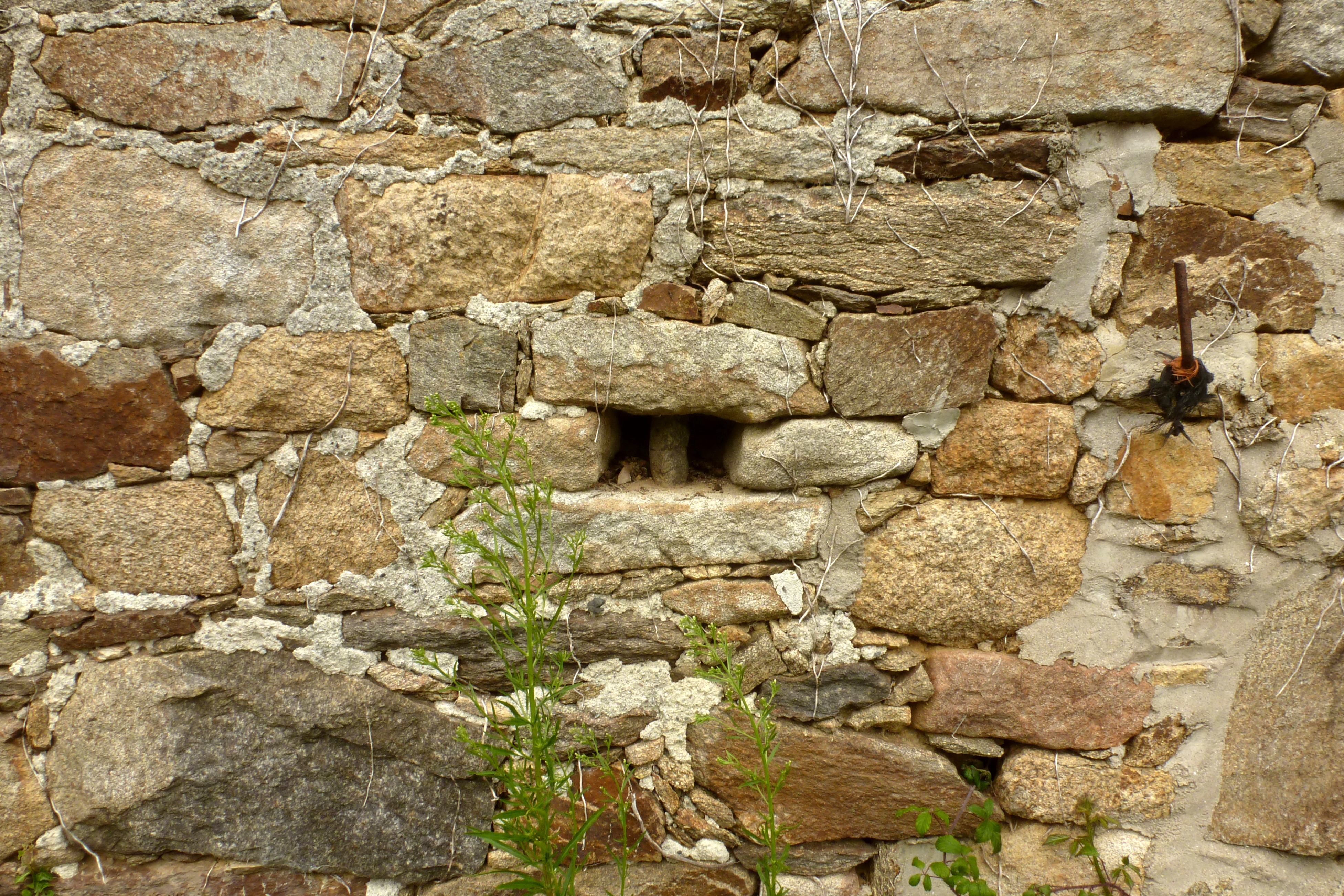 Ancien logis devenu étable, trou d'attache aménagé à l'extérieur du mur sud. (2021)Immatriculation