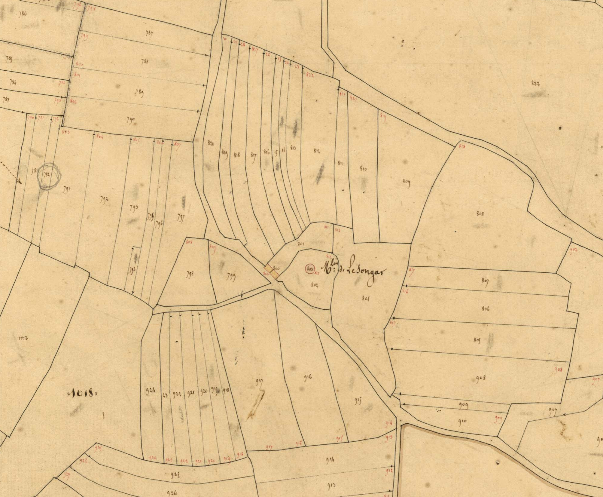 Moulin de Lezongar, Section D 3 de Lezongar du cadastre ancien de la commune d'Esquibien, 1837.Immatriculation