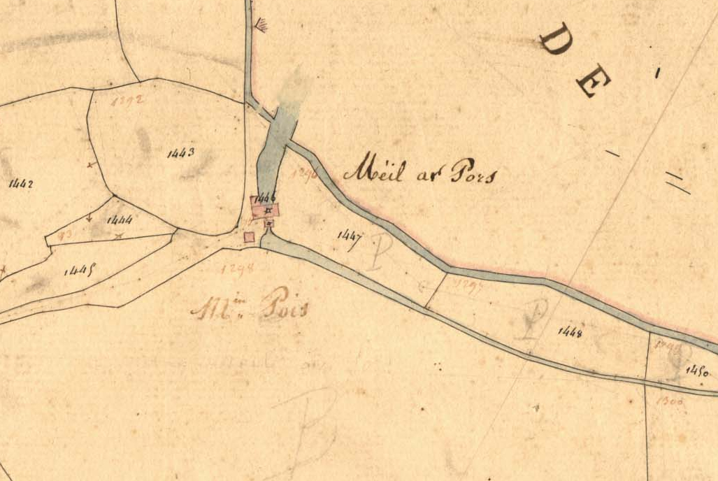 Meil ar Pors, Section B 4 de Keridreuff du cadastre de Plouninec, 1836.Immatriculation