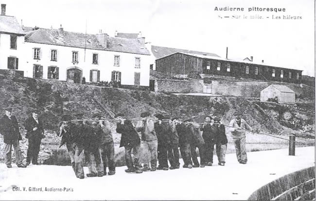 Anciennes conserveries A et G CHANCERELLE (à gauche) et LE BOUR (à droite, dite "fritur koat", la conserverie en bois). (Reproduction carte postale Giffard début 20e siècle)Immatriculation