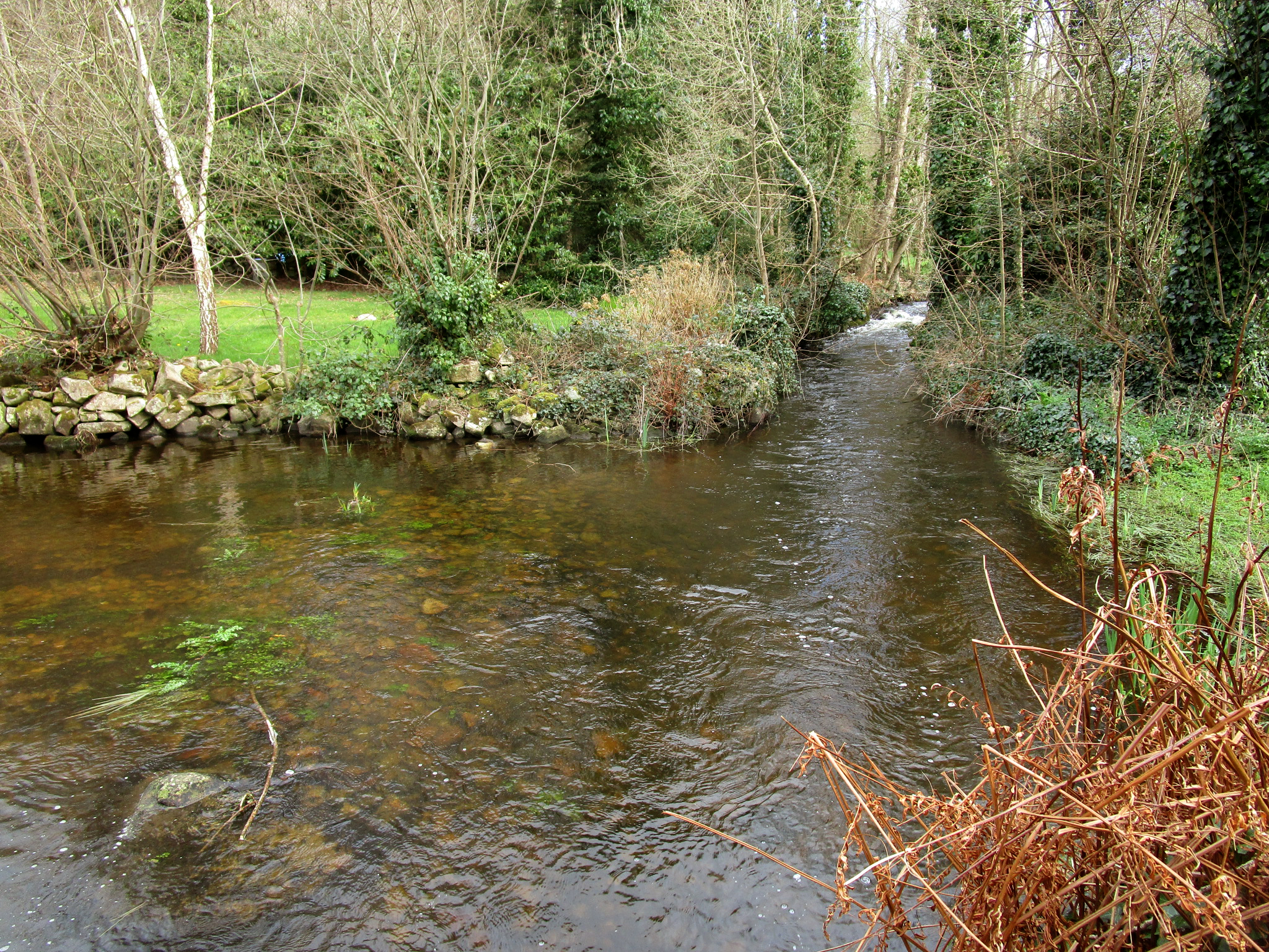 Arrivée de l'eau du ruisseau dans le bassin de rétention. Vue prise de l'ouest.Immatriculation