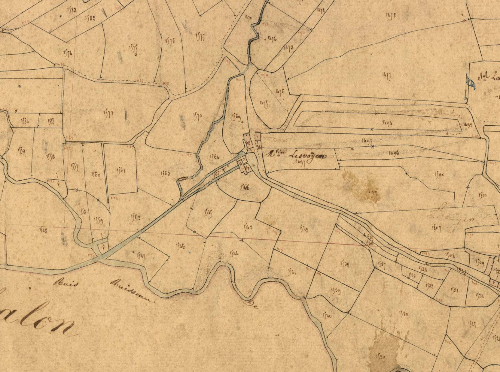Moulin de Lesvoyen. Section C 2 du Bourg du cadastre de Meilars, 1837.Immatriculation
