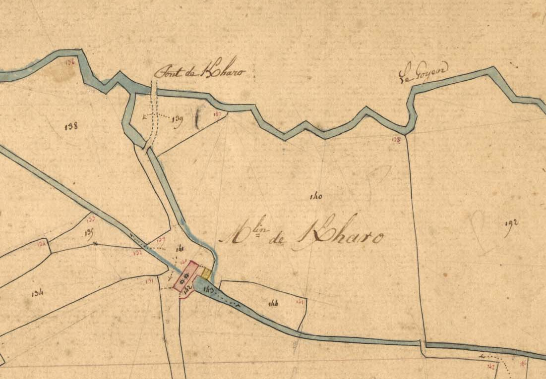 Moulin de Kerharo, Section B 1 du Bourg du cadastre ancien de la commune de Mahalon, 1836.Immatriculation