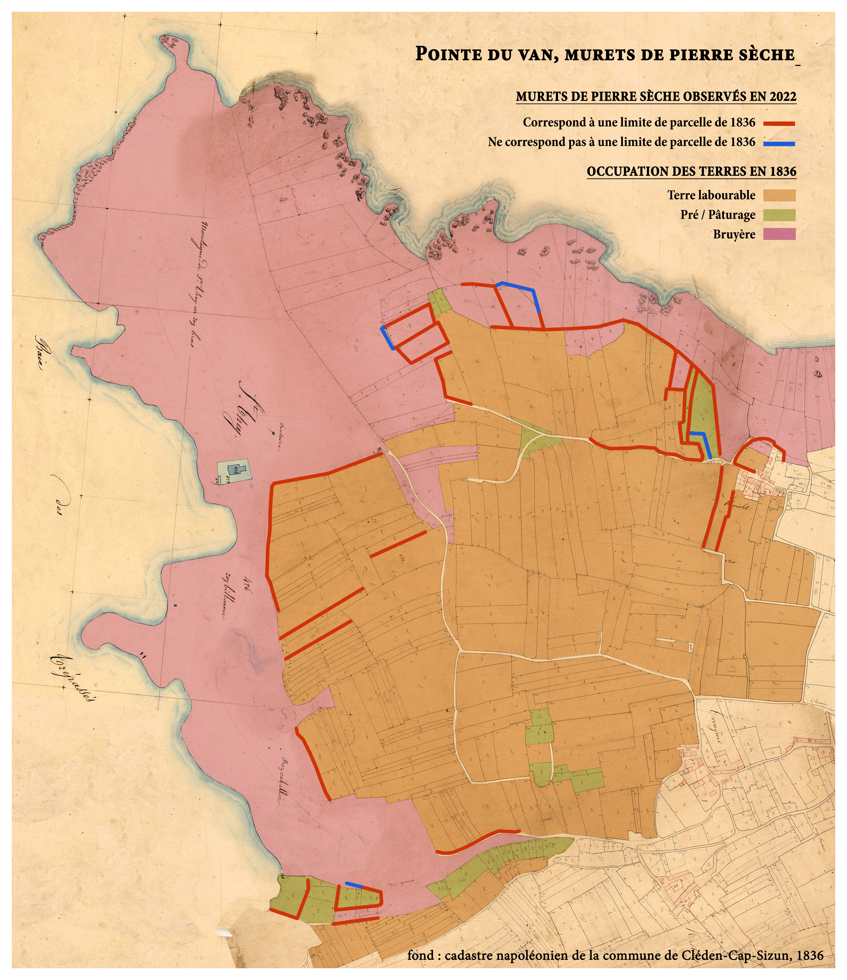 Occupation des sols en 1836. Fond : Cadastre ancien de la commune de Cléden-Cap-Sizun.Immatriculation