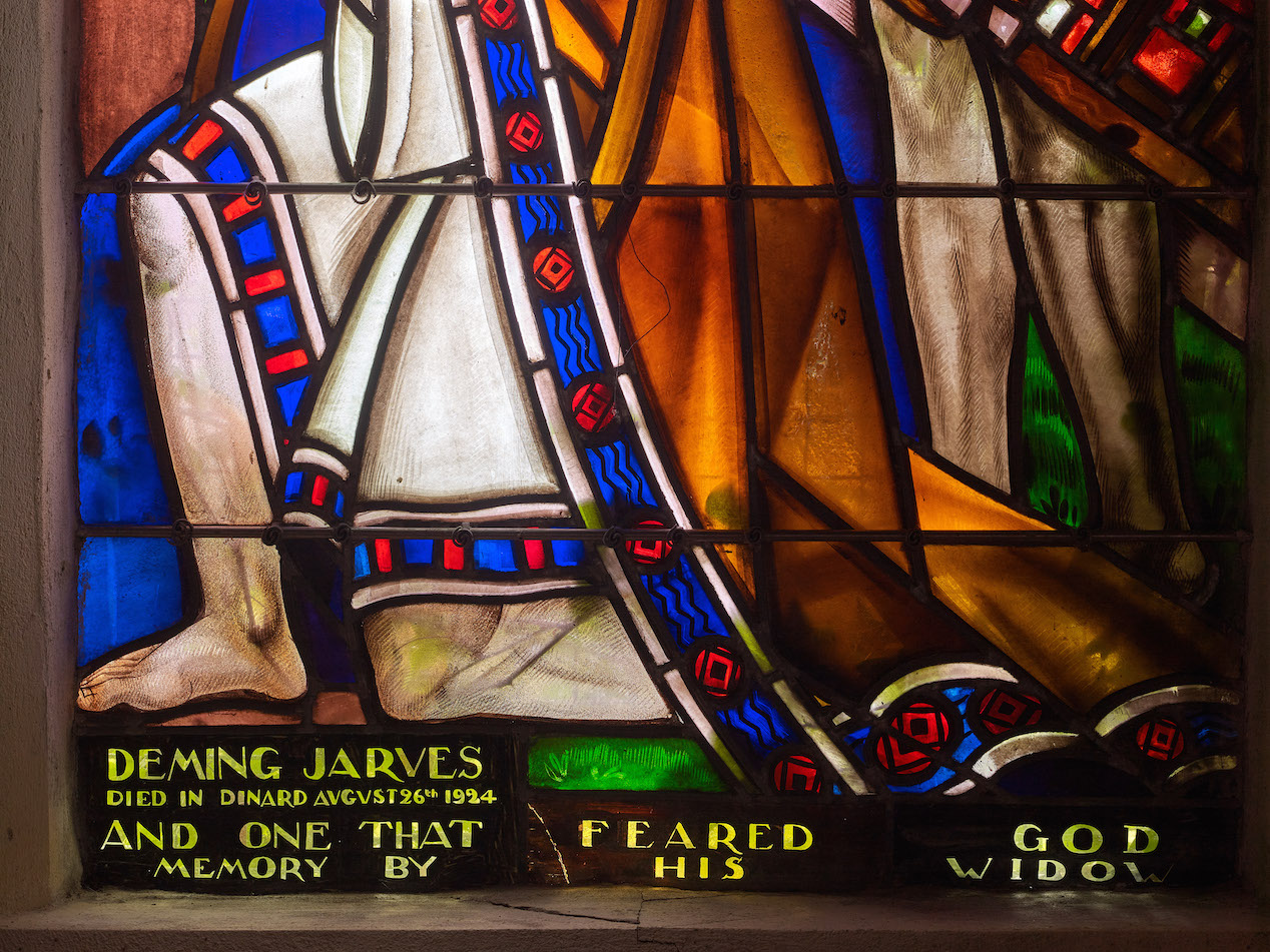 Verrière 4 'Les rois mages offrent leurs présents à Jésus après avoir été guidés vers lui par l'étoile', détail (2021)Immatriculation