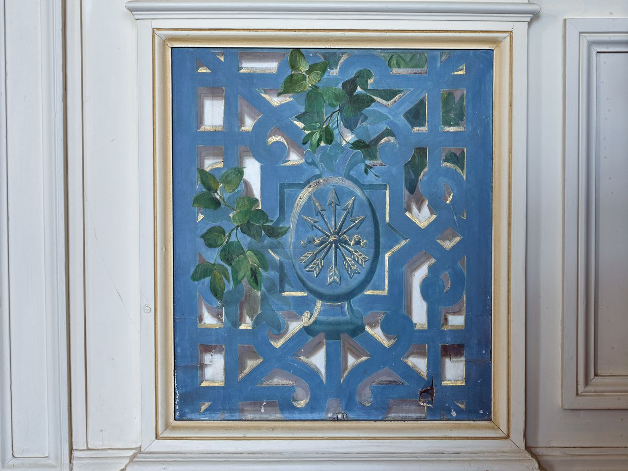 Détail d'une toile marouflée aux armes des Rothschild, provenant de leur hôtel particulier détruit, rue Laffite à ParisImmatriculation