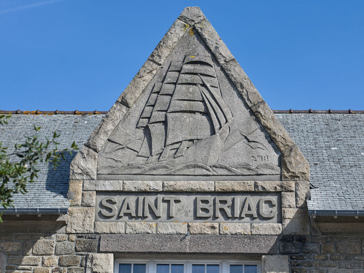 Détail du fronton triangulaire avec voilier sculptéImmatriculation