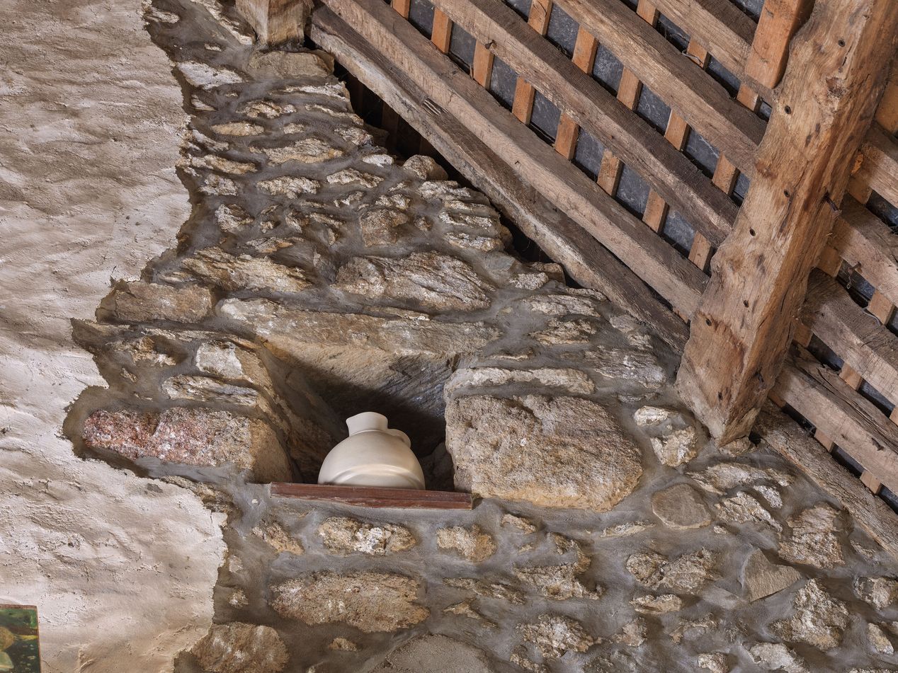 Pignon, vue intérieure d'une petite fenêtre obturéeImmatriculation
